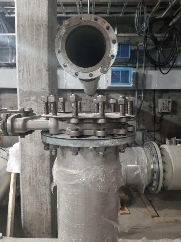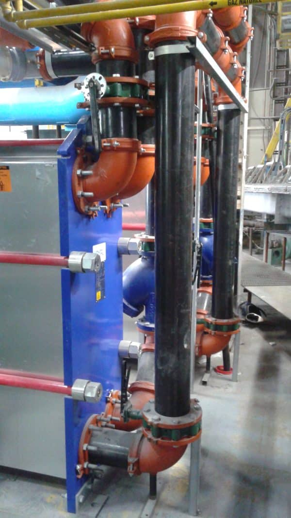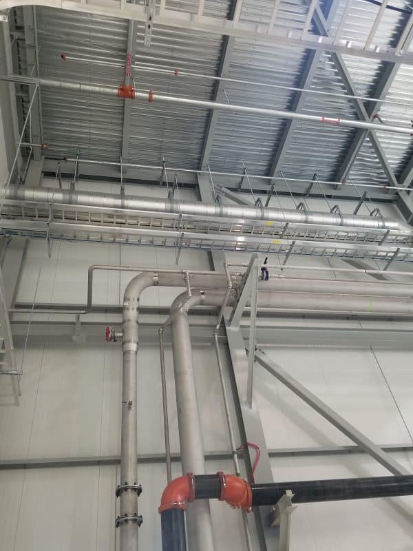 Projet adjacent à une ligne de coulée de métal en fusion en production. Tuyauterie de 6″ pour un débit d’environ 900 gallons (US) par minute